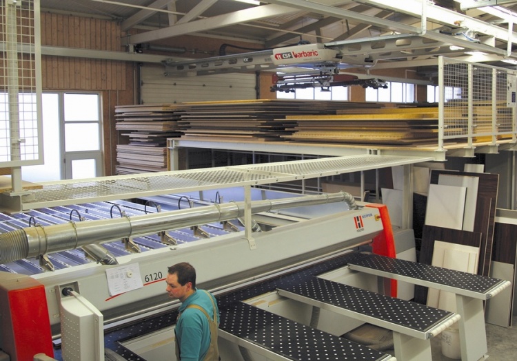 Maschinenmaß Länge x Breite 4400 x 6500mm. Der Zuschnitt erfolgt als Einzelplattenzuschnitt ausrissfrei oder auf Wunsch im Paketschnitt mit höherer Zuschnittleistung.